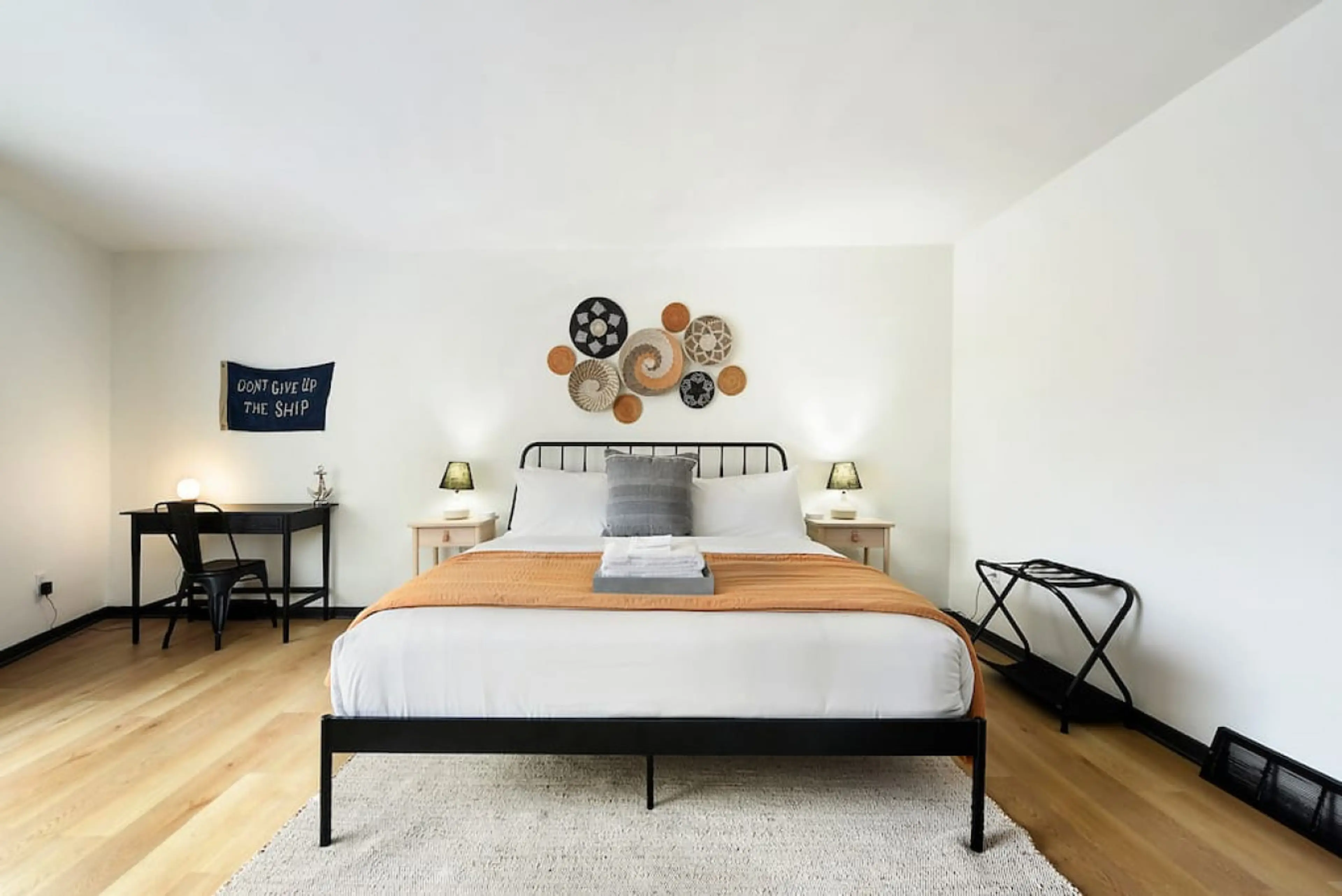 Bedroom was big with nice added touches of working spaces and yoga mat