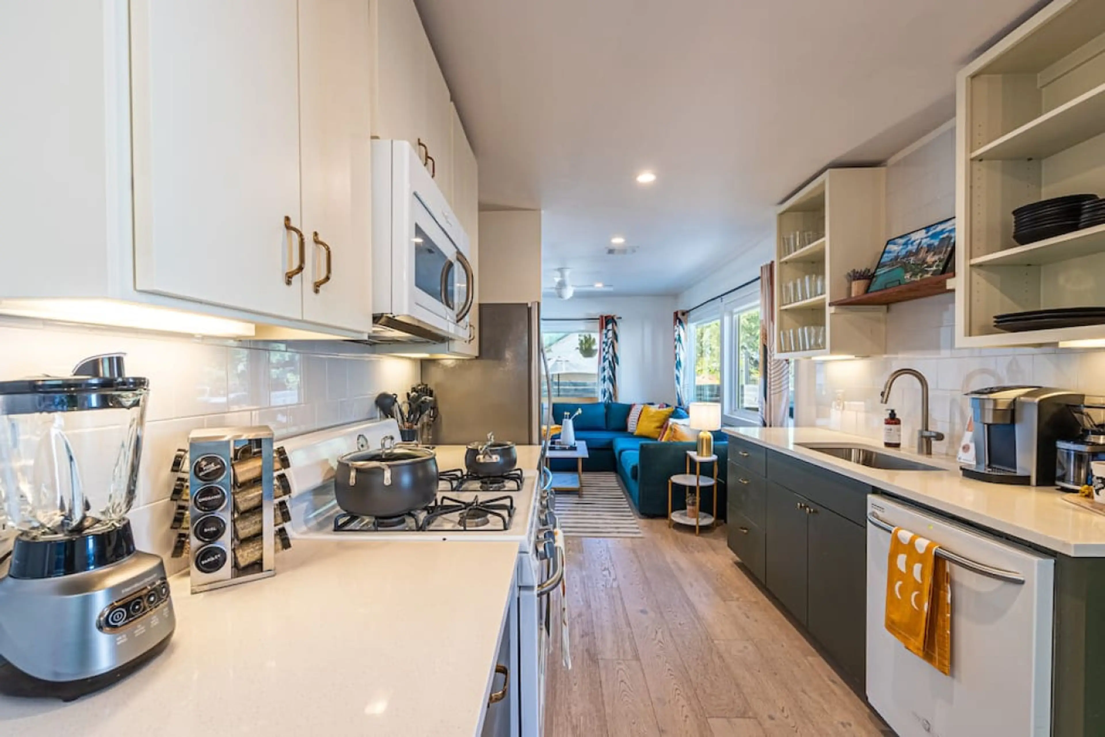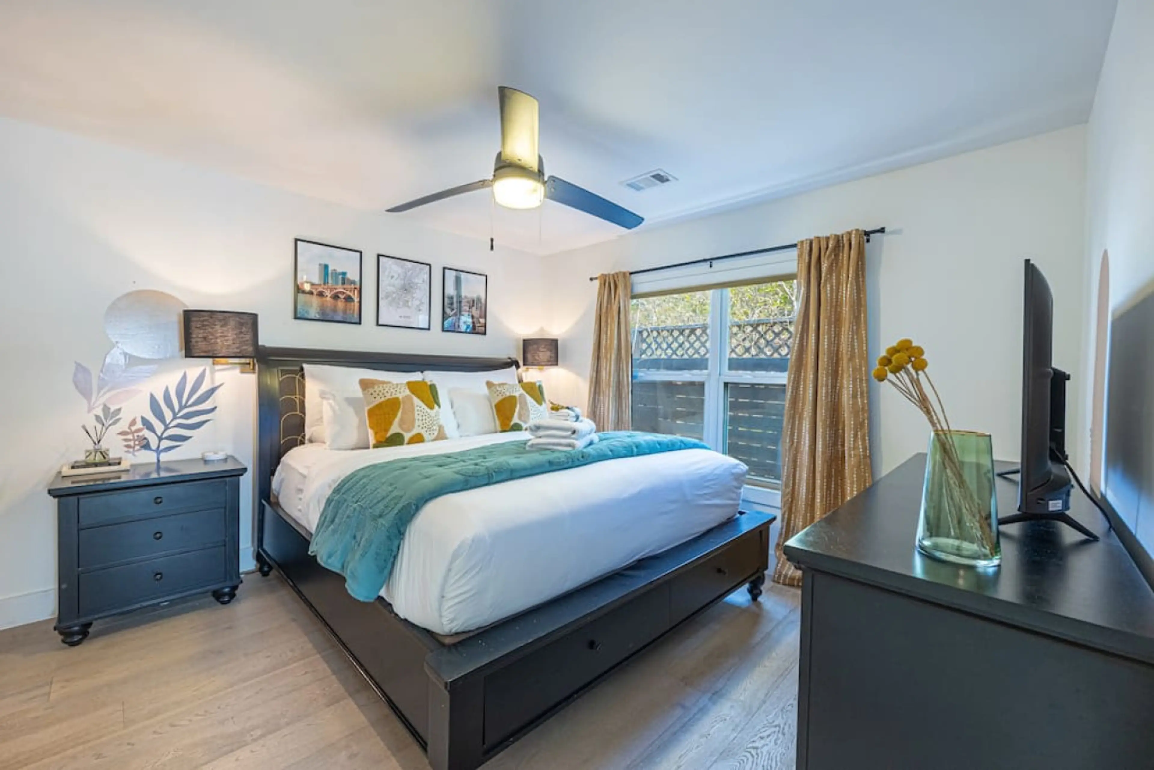 Welcome to Austin! Our pet friendly home features a fenced in backyard for your furry family member. Sit outside and enjoy the sunny Texas weather, or grab a book and relax in the hammock. Our well stocked kitchen invites you to cook a meal, or shake up a great cocktail. With an easy walk (or scoote...