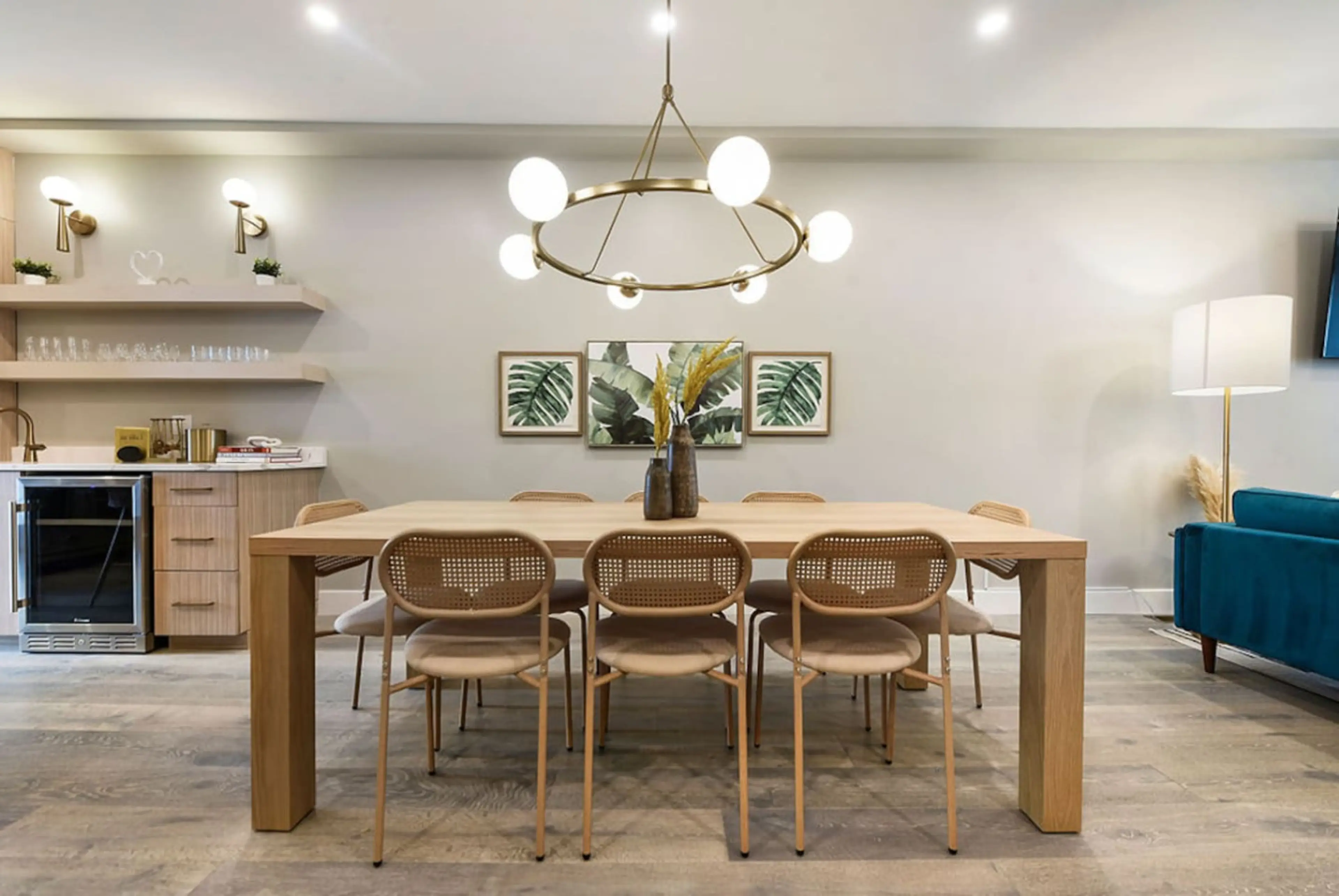 Our brand new North Side oasis offers a 6-person hot tub, backyard fire pit, outdoor dining area, and a game room with projector, foosball, & more. Inside, you’ll find 4 plush king beds, blackout curtains, Roku TVs, & 4 workstations—perfect for balancing play and productivity. The luxe kitchen is fu...