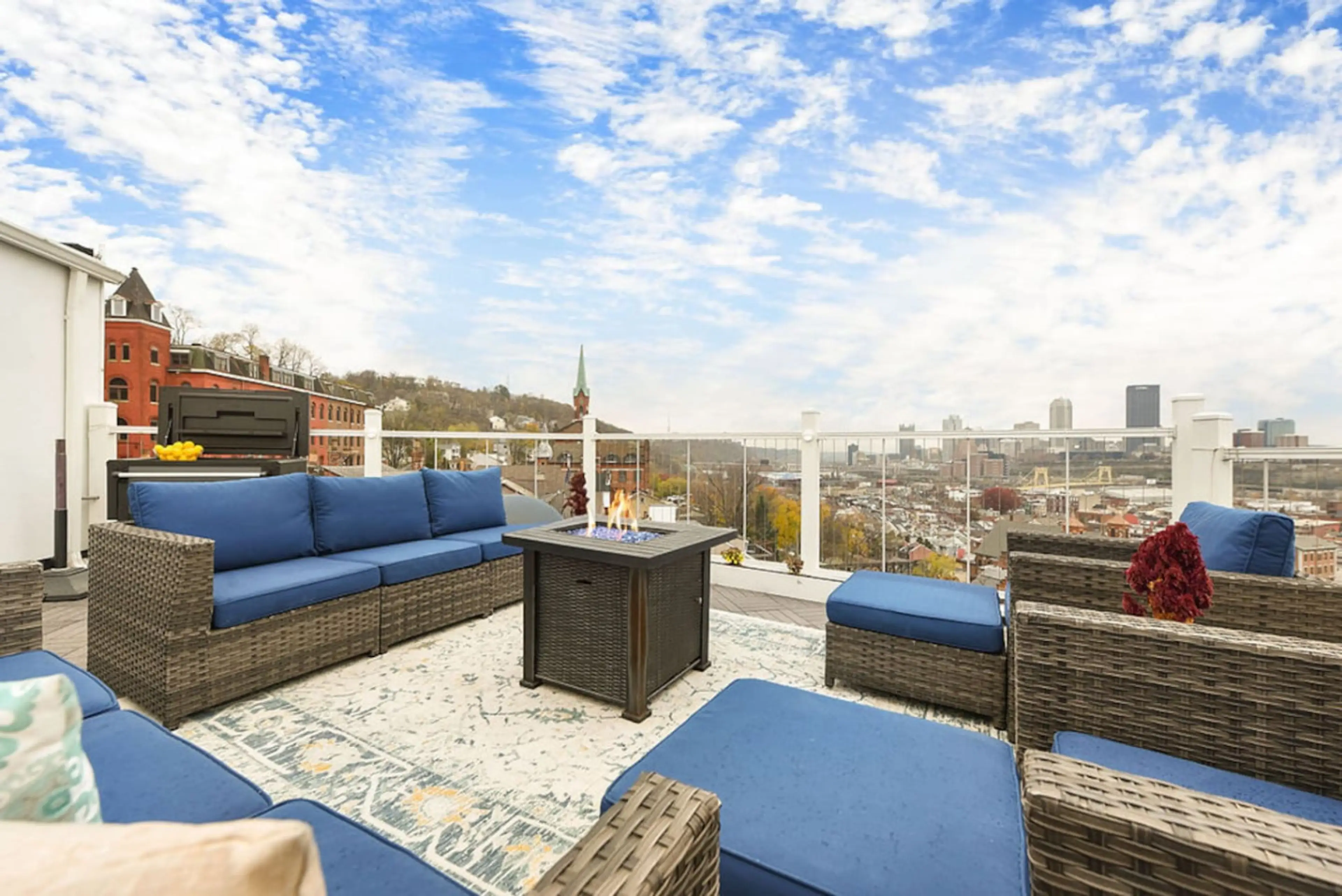 Soak up jaw-dropping skyline views from four private outdoor spaces—including a full rooftop deck with grill, fire pit, bar seating & games. Perfect for families and groups, this 5-floor South Side Slopes retreat features a game-packed basement (ping pong, pool, darts), luxe primary suite (with city...