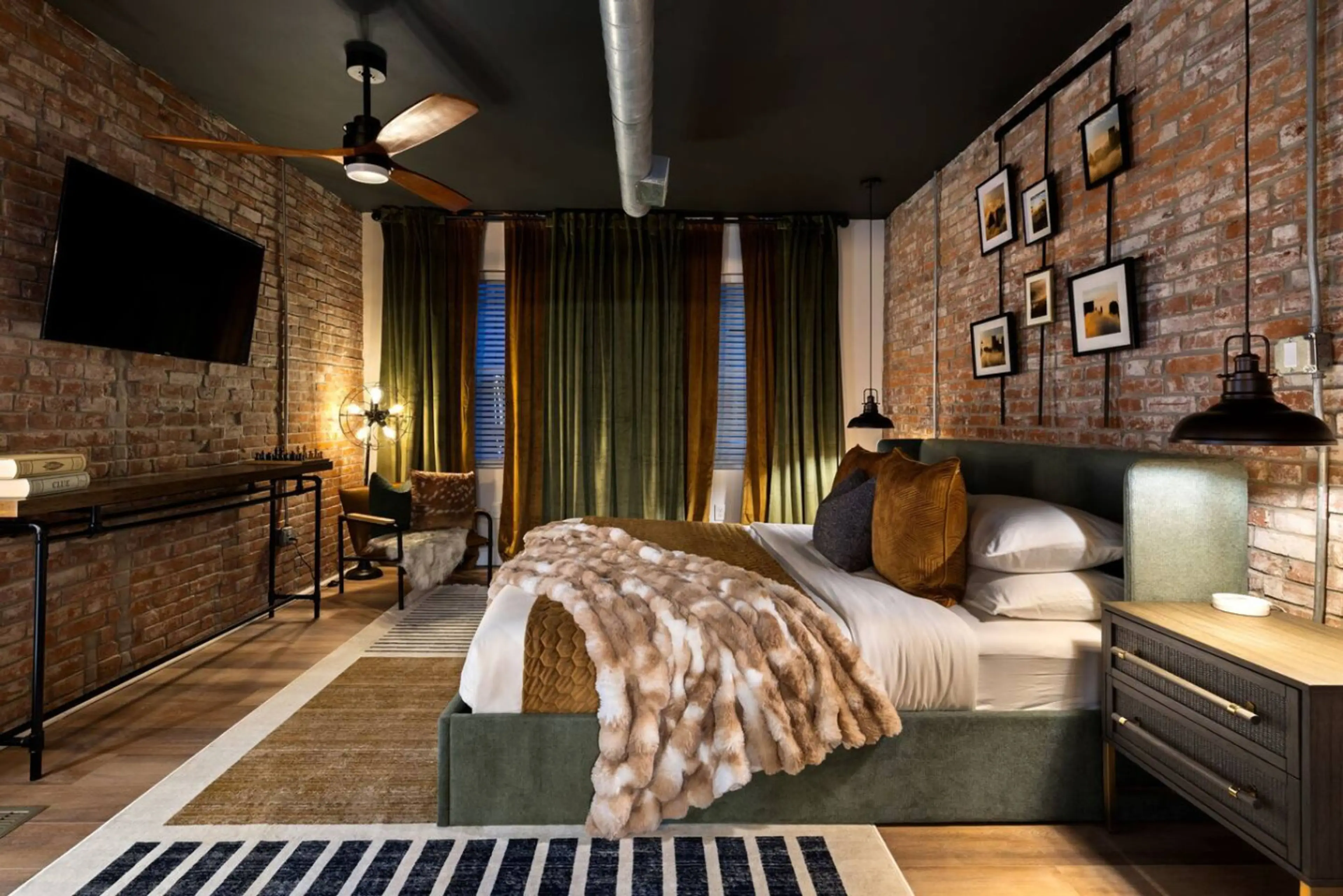 With cozy cabin vibes, exposed brick, and designer touches, this romantic getaway is perfect for couples or a relaxing stay. Escape to a rustic-modern retreat in the heart of Lawrenceville, just one block from Butler Street! Unwind in the private hot tub, snuggle up on the couch by the fireplace, or...