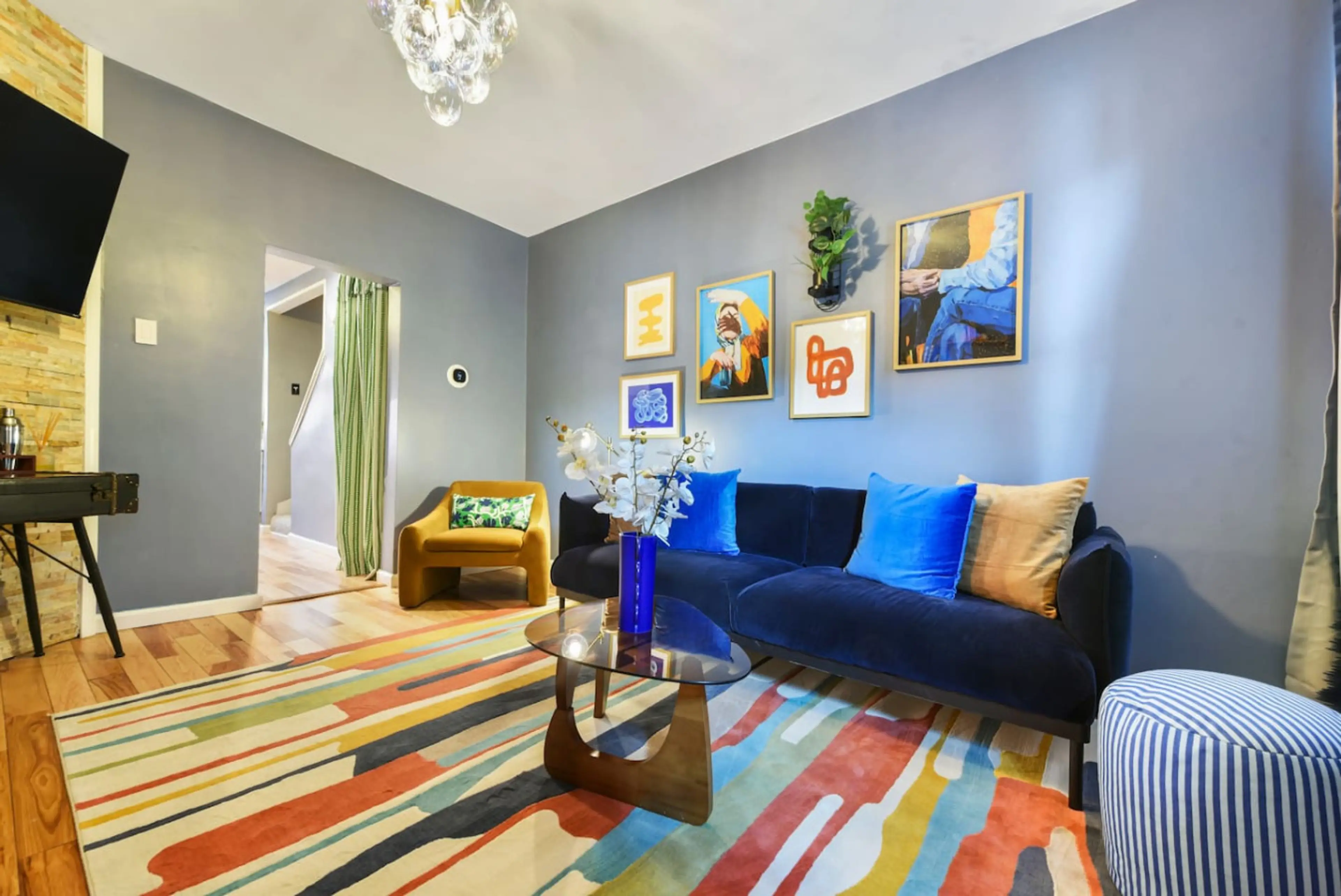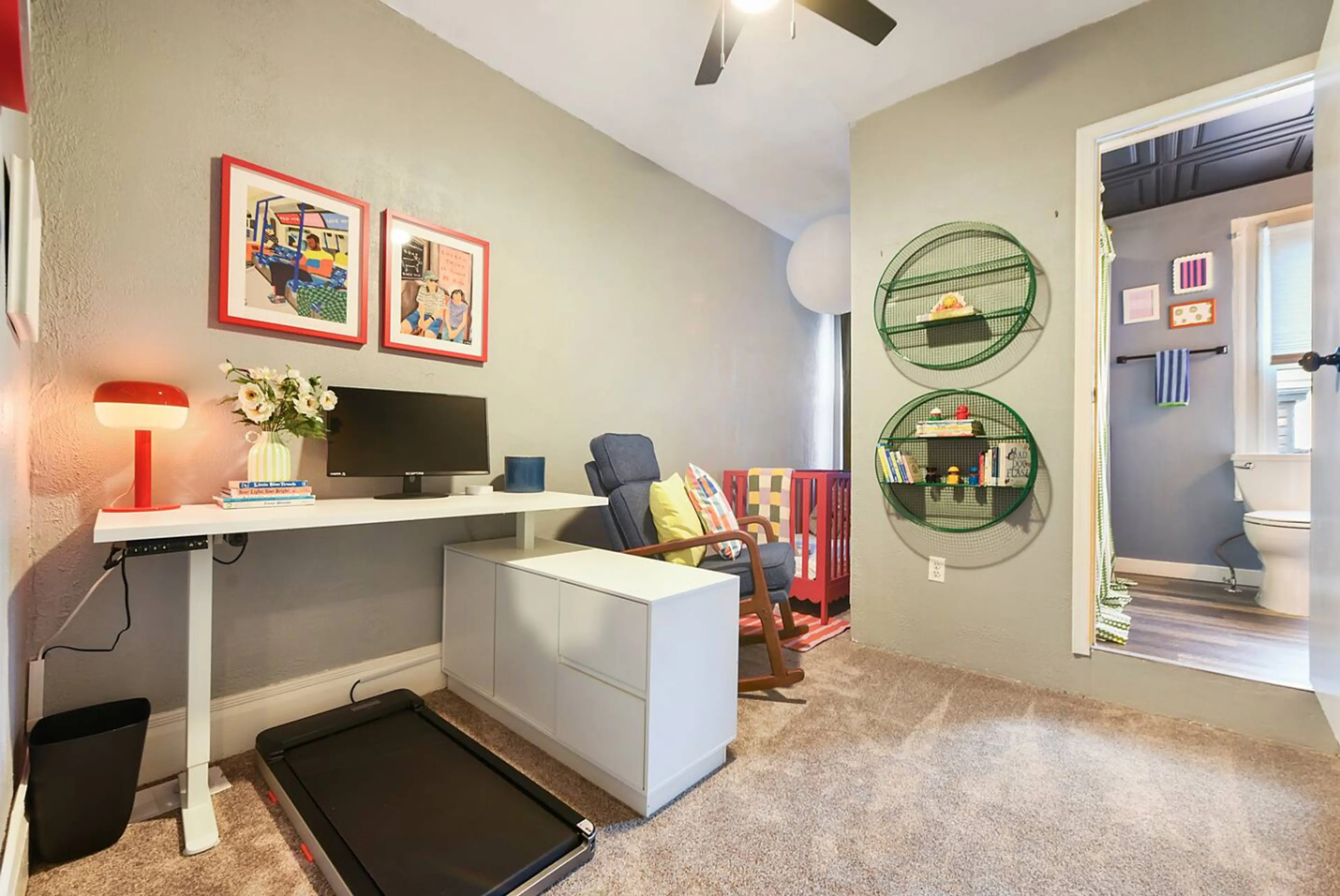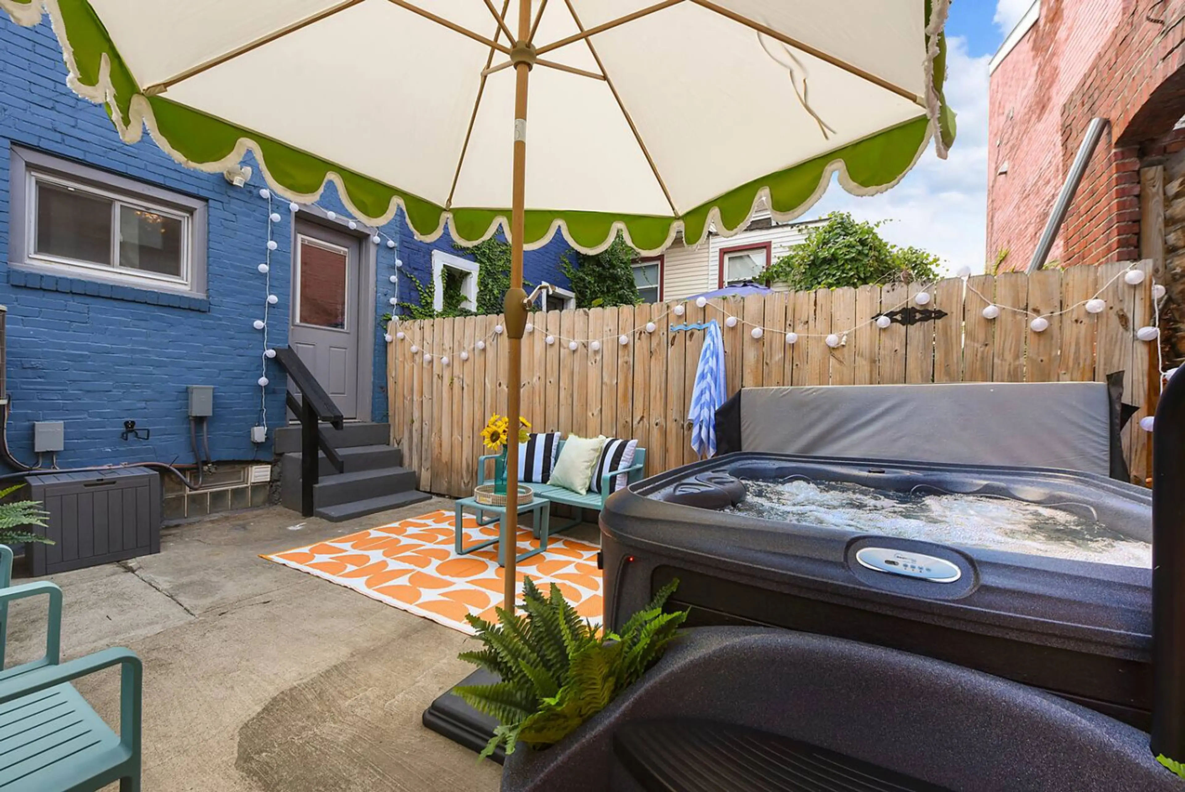 Soak, work, and relax at this vibrant Lawrenceville retreat! Enjoy your private hot tub on the patio, unwind in our colorful, fun interior, and make use of the flexible layout (1BR plus separate office / kid's room / treadmill desk workspace). It’s ideal for weekend escapes as well as extended stays...