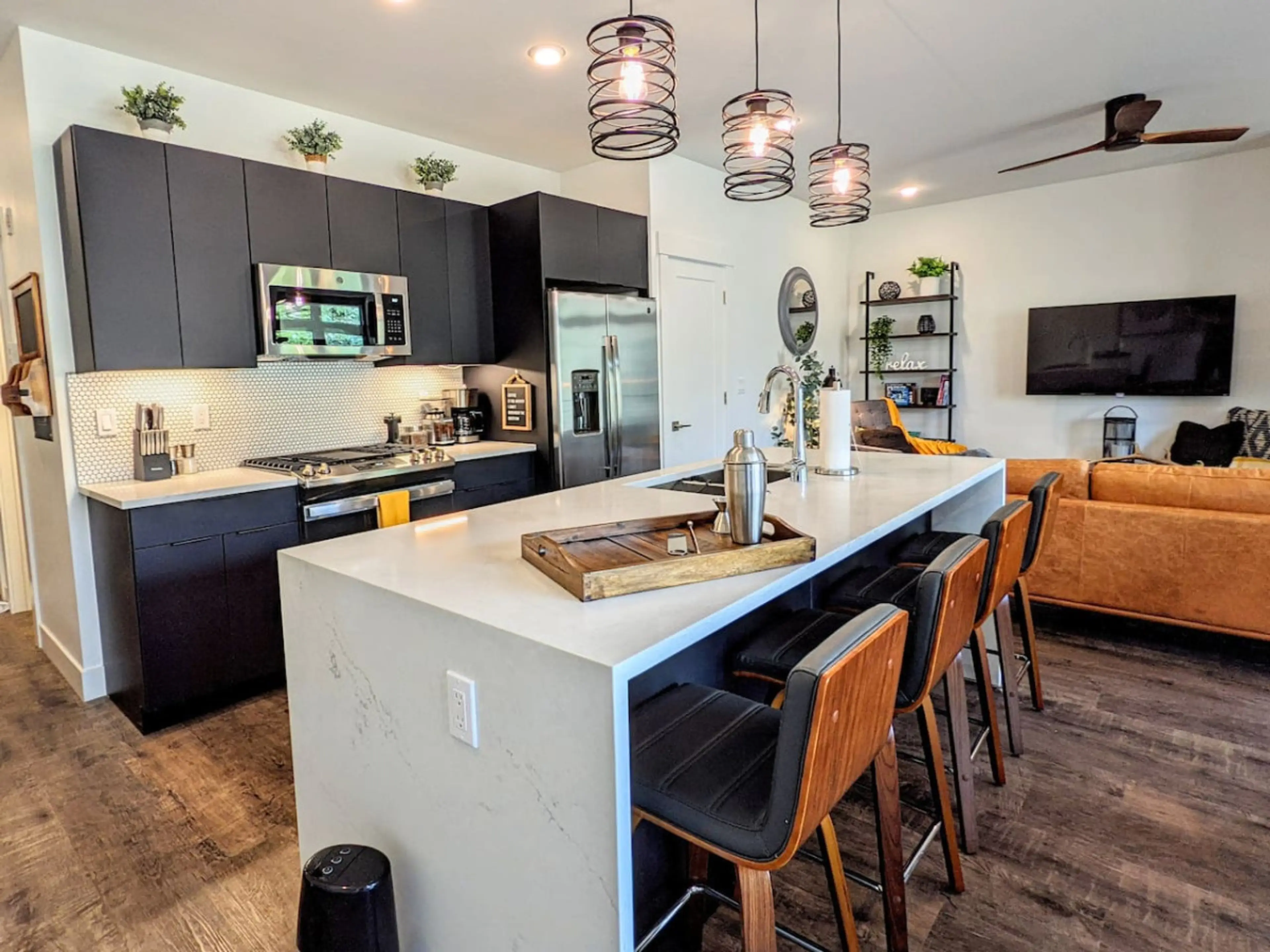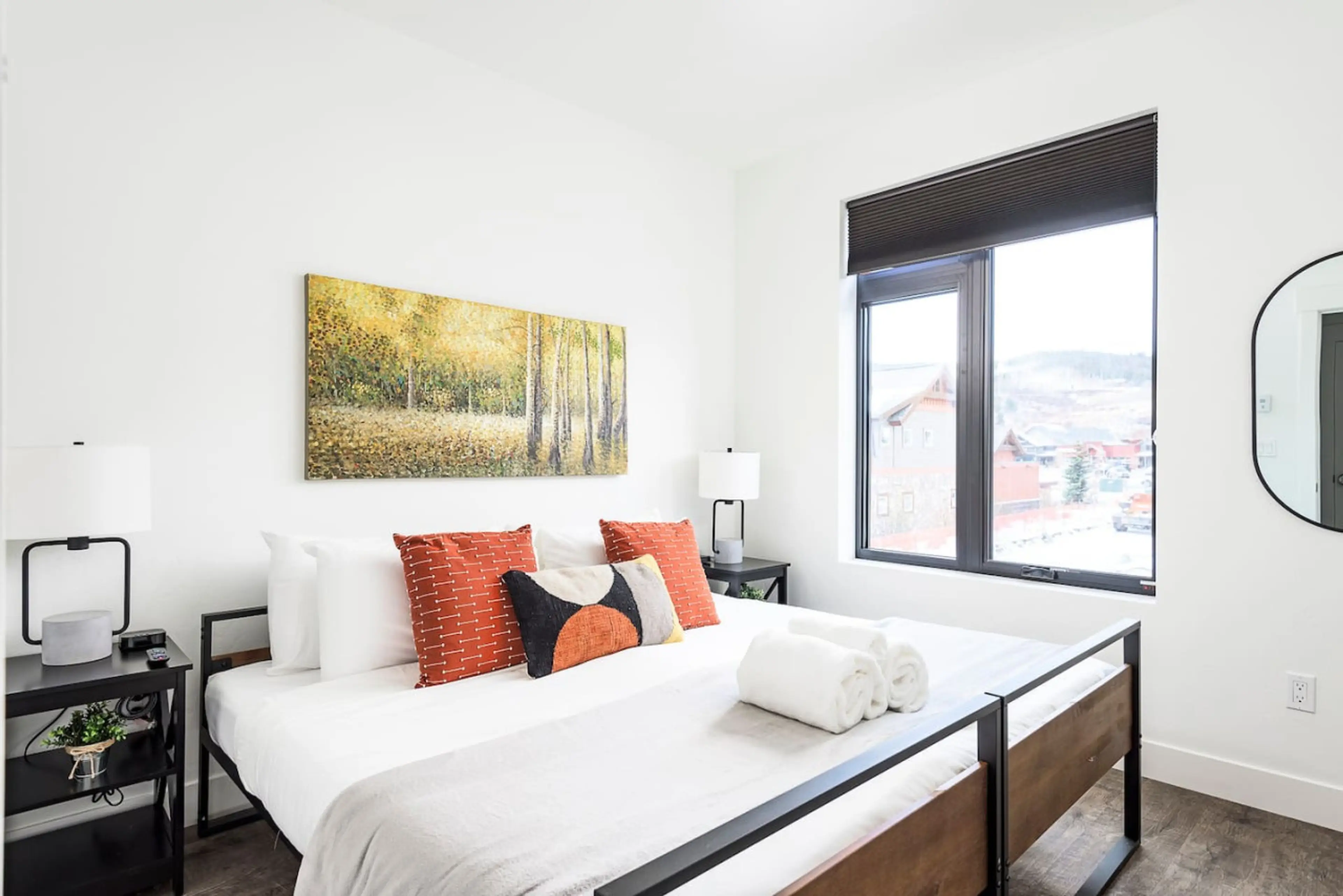Perched directly on the Blue River, our 2021-built condo features everything you'll need for your mountain getaway! Sit on our private deck with 180 degree river and mountain views, or kick your feet up on the couch and relax in front of the fireplace. Enjoy preparing a meal in our well stocked kitc...